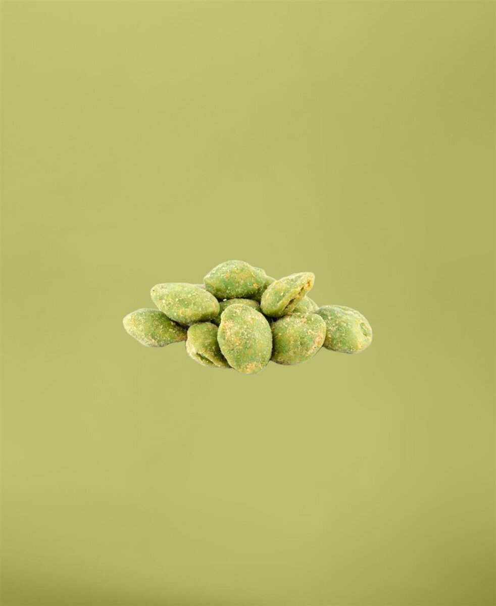 Scharfe Hülle & knackiger Kern: Die gerösteten Erdnusskerne sind von einer von kross gebackenen, würzigen japanischer Wasabi-Teigschicht umhüllt. Die Wasabi-Erdnüsse sind ein besonders würziges Nascherlebnis für alle, die es scharf mögen. Der Meerrettichgeschmack des Teigmantels verleiht den Erdnüssen eine angenehme Schärfe, die im Gegensatz zum Chili kürzer im Mund verbleibt. Der ruhige Nusskern im Wasabi-Mantel wird mit seinem scharfen Überzug zu einer wahren Geschmacksexplosion!